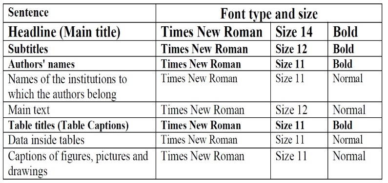 However, for the figures, drawings, and pictures, their title is placed underneath them and the font size is as shown in the upper table regarding font types. for example: